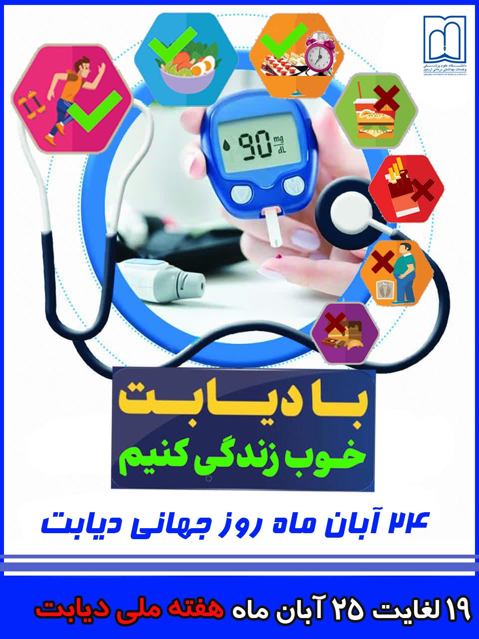 روز جهانی دیابت بزرگ ترین کمپین آگاهی از دیابت در جهان است که امسال این روز جهانی در 23 آبانماه باشعار "با دیابت خوب زندگی کنیم " برگزار می شود.